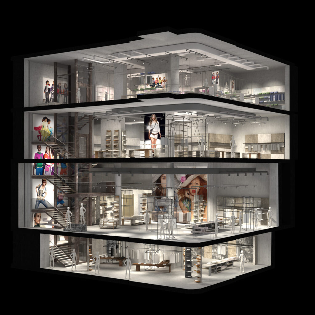 Neugestaltung des BENETTON Megastores in der Kärntner Straße durch Architekt Michae Rieper / MVD Austria und den italienischen Designer Vinvenzo De Cotiis